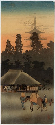 M-88. Travellers approaching teahouse at sunset