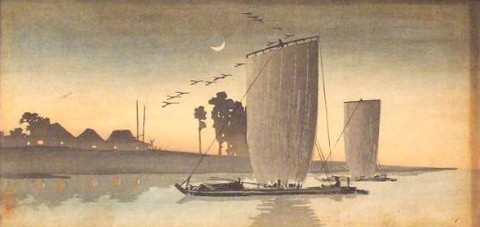 S-79. Sailboats, river, crescent moon