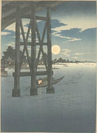 The Full Moon under the Bridge on the River Sumida